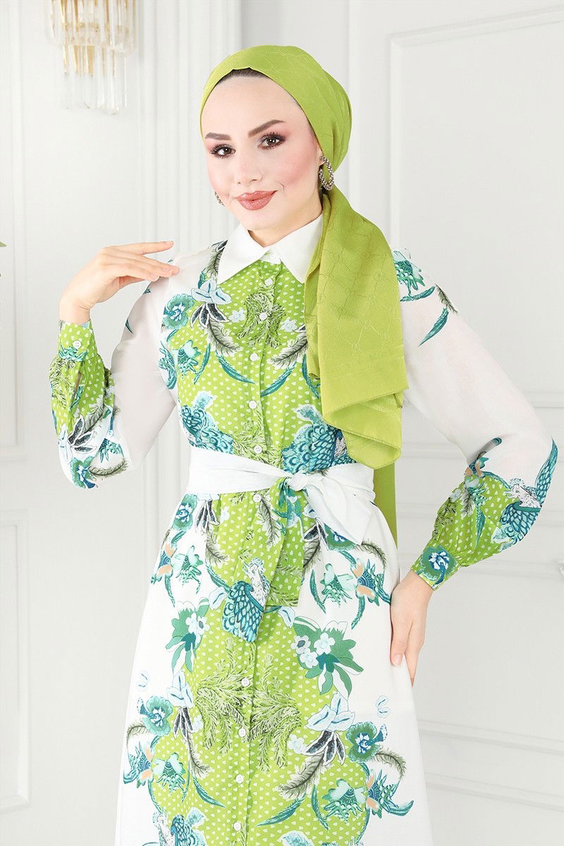 Yeşil Kemerli Poplin Elbise Detayları
