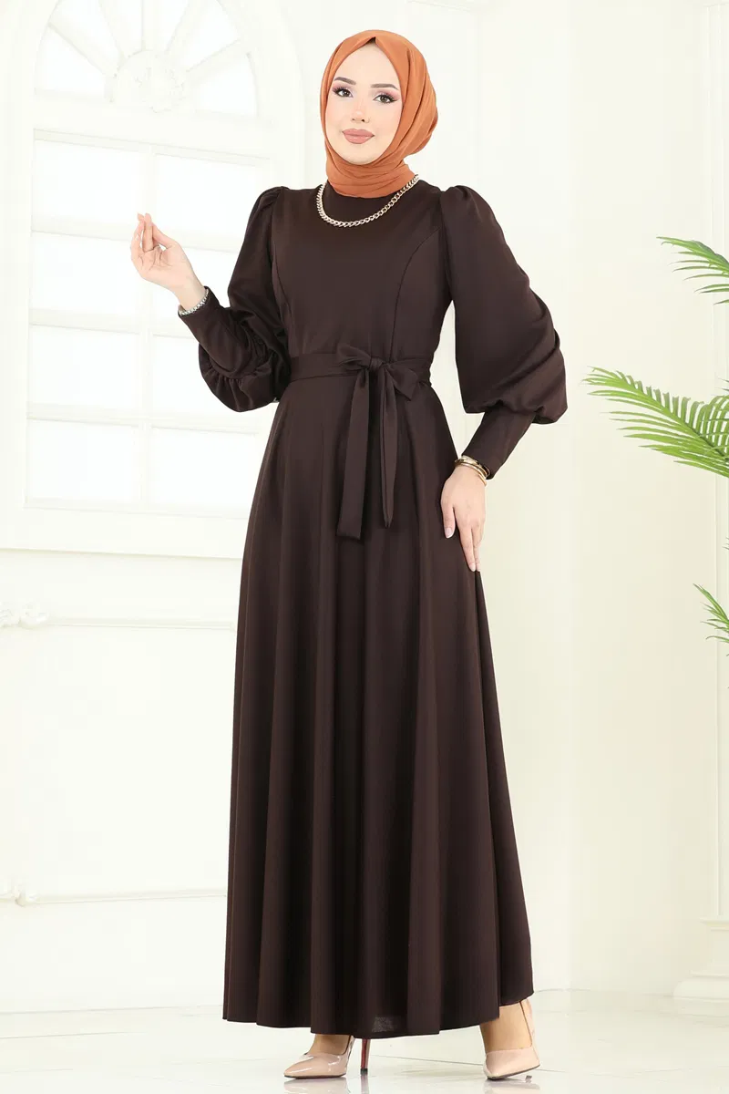 Kemerli Tesettür Elbise 4539ALG474-MS Acı Kahve