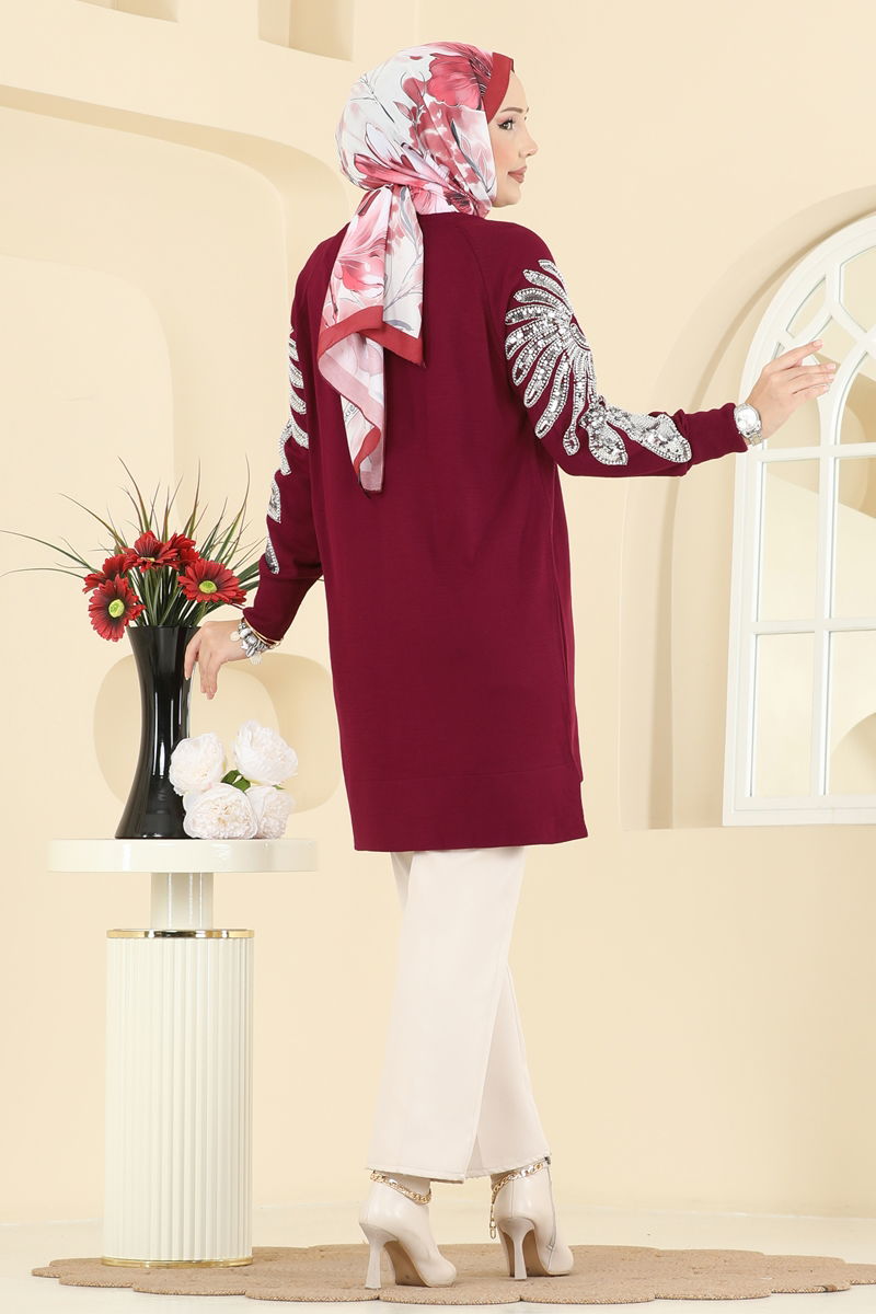 Kolları İşlemeli Triko Tunik 2494UZ662-MS Bordo