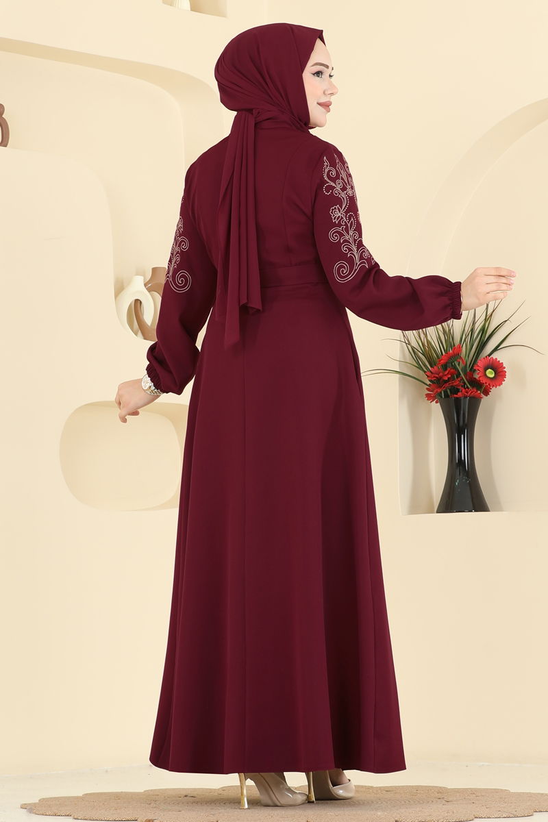 Kolları Nakışlı Dabıl Ferace 2768SL432-MS Bordo
