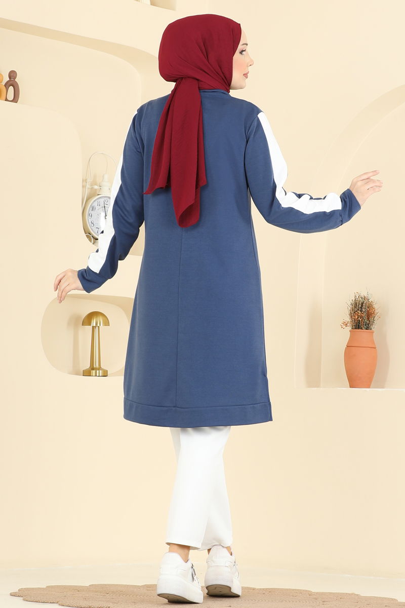 Kolları Şeritli İki İplik Tunik 1006ETT926-MS İndigo