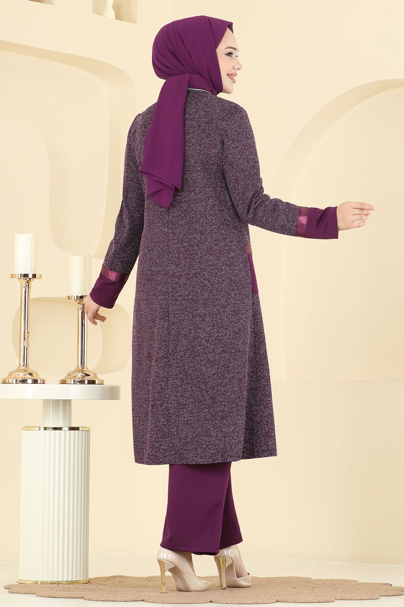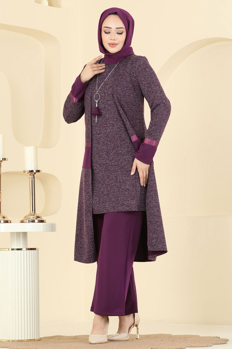 Product Feature : It is a new season hijab fashion product. The product has a Cycling collar. It's unlined. It's see-through.. Accessory included, optional not available. Cardigan is sewn to the product. The waist of the trousers is elastic. There may be a tonal difference in the product due to concept photo shoots.
