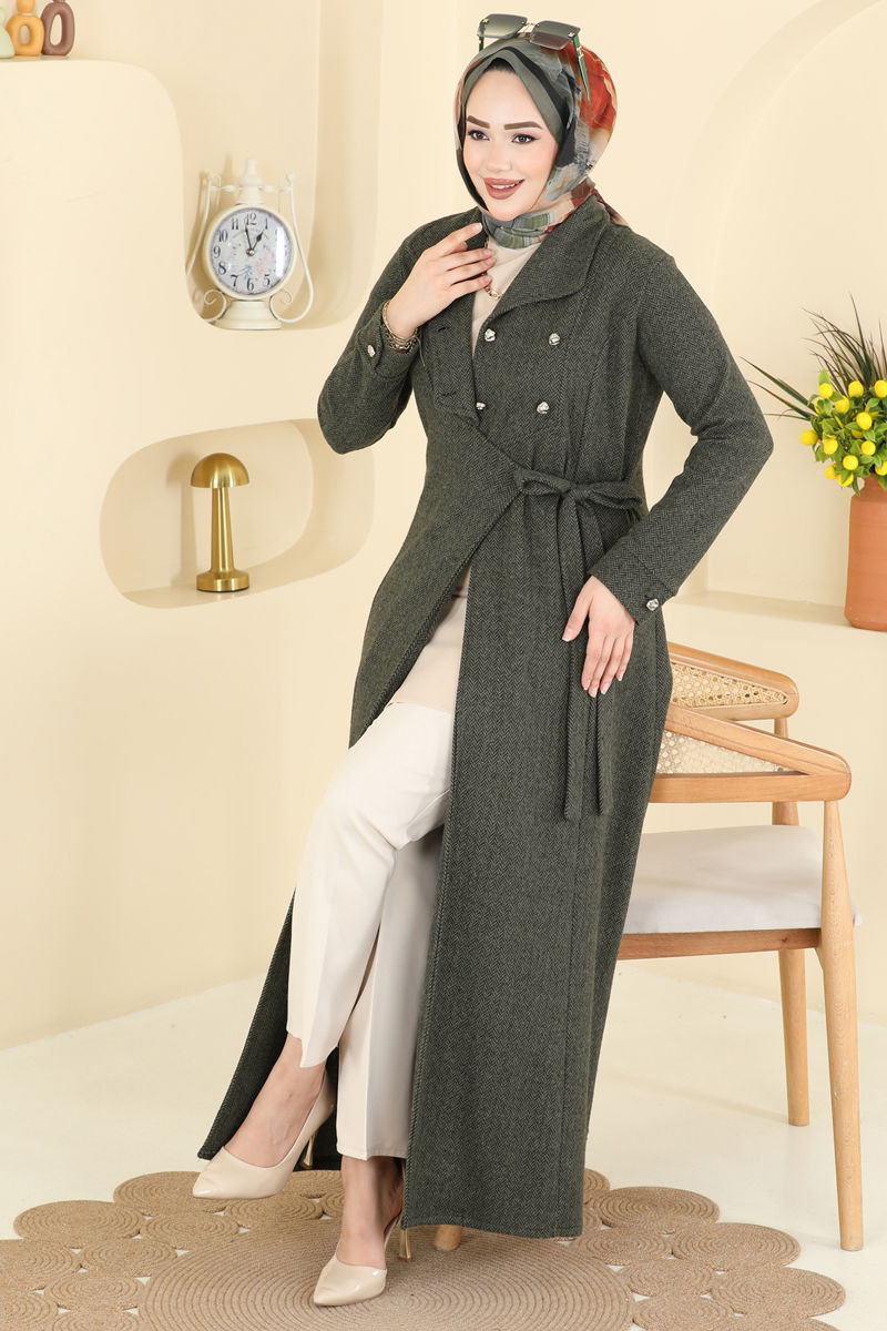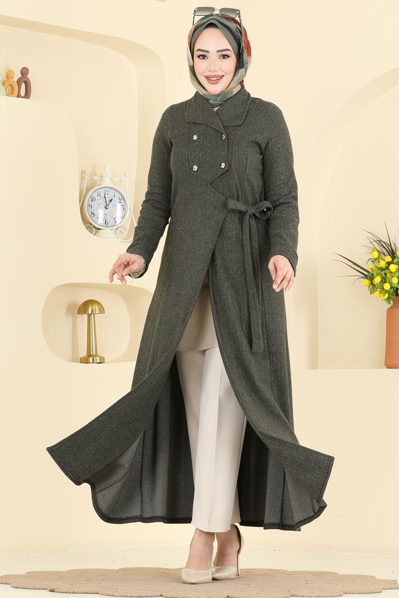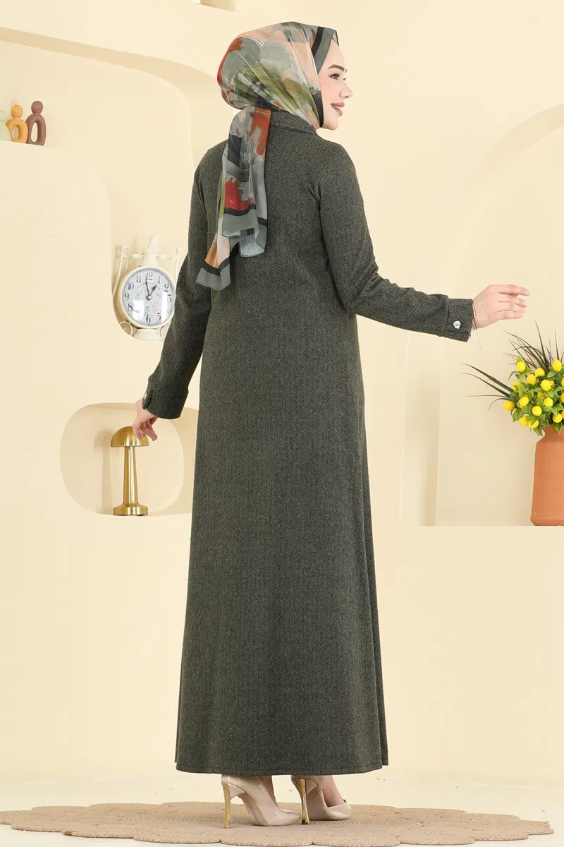 Kruvaze Yaka Balıksırtı Ferace 24025UKB139-MS Haki