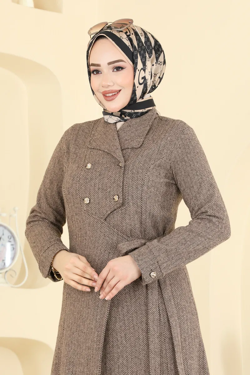 Kruvaze Yaka Balıksırtı Ferace 24025UKB139-MS Vizyon