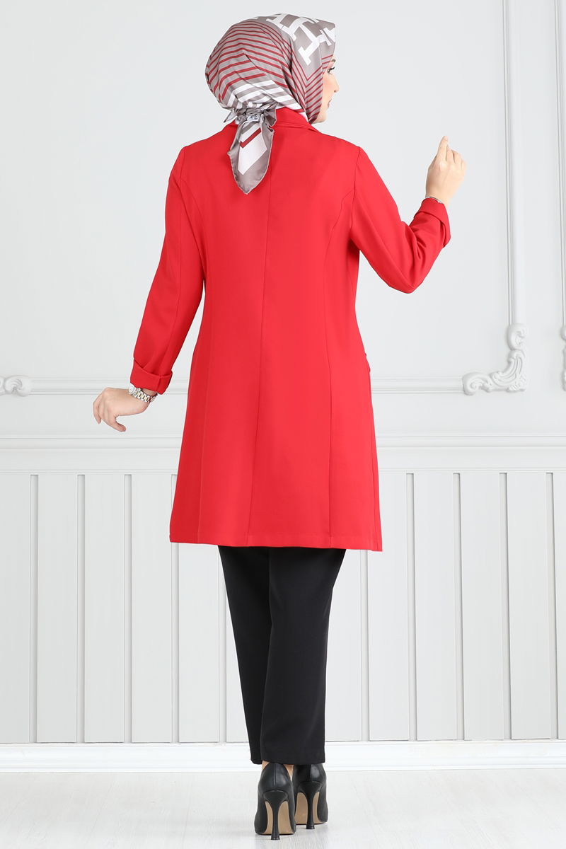Kruvaze Yaka Ceketli Takım 2626SL432-MS Kırmızı&Siyah