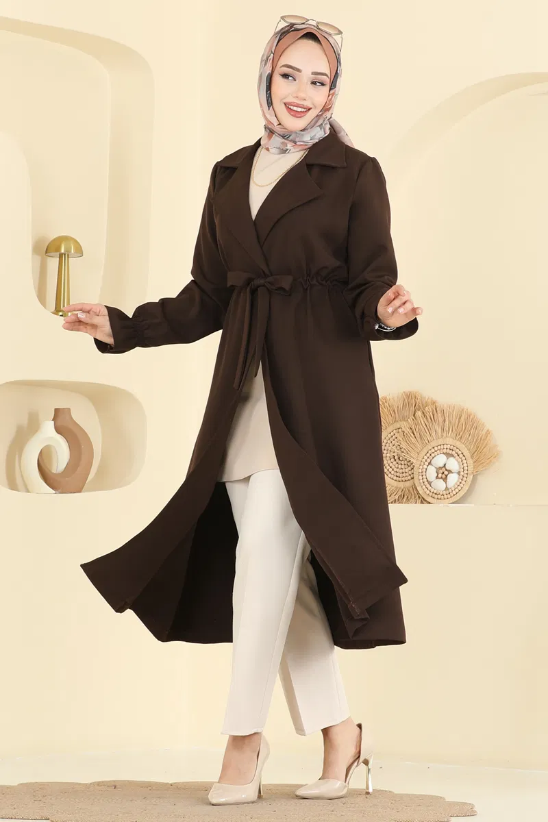 Çapraz Yakalı Dabıl Kumaş Kahverengi Kap