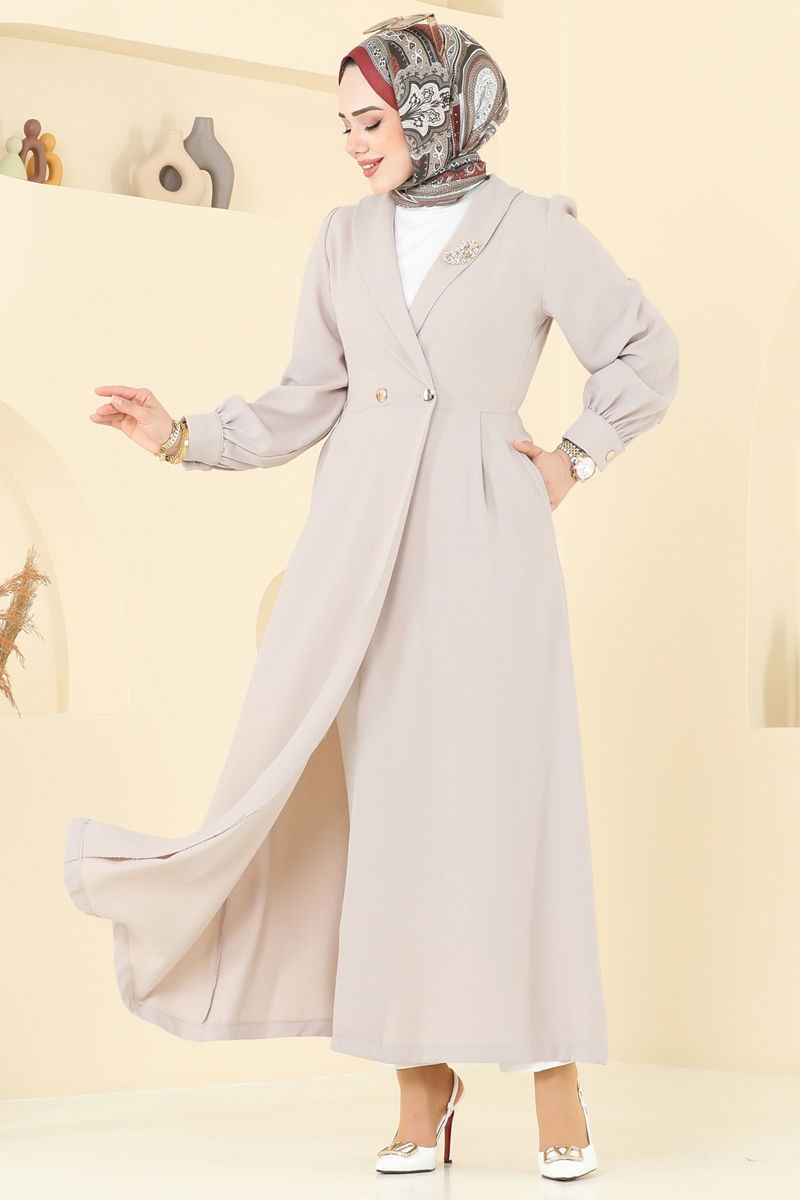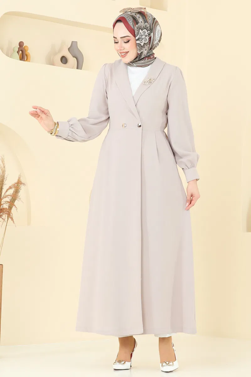 Kruvaze Yaka Tesettür Kap 6214BSK463-MS Taş