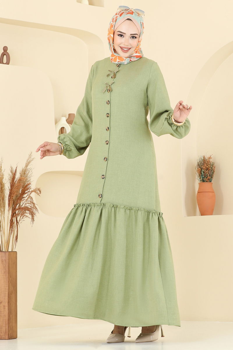 Kurdela Detaylı Sofia Elbise 4115PM271-MS Çağla