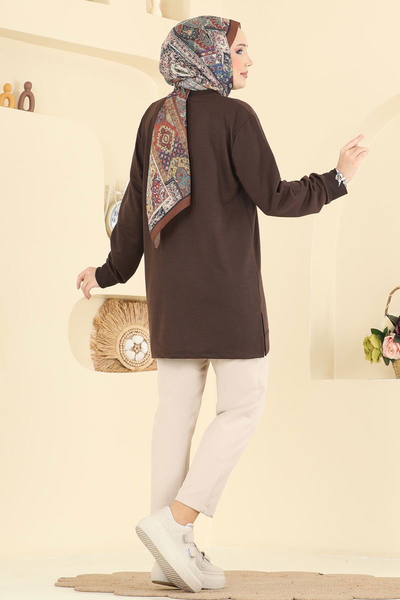 Kurdele Desenli İki İp Tunik 305OZN1046-MS Kahve