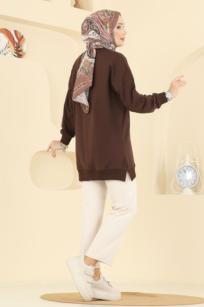 Kurdele Yırtmaçlı İki İp Tunik 7095TEG847-MS Kahve