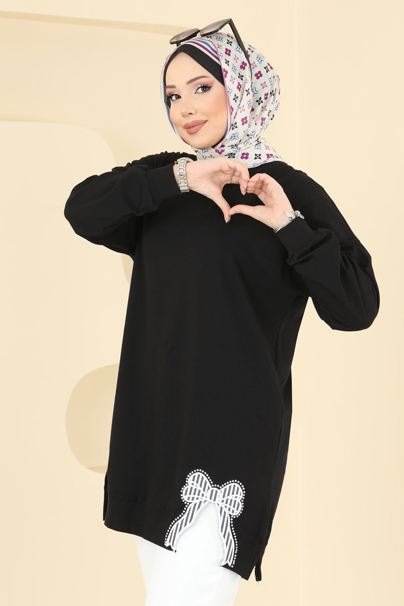 Kurdele Yırtmaçlı İki İp Tunik 7095TEG847-MS Siyah