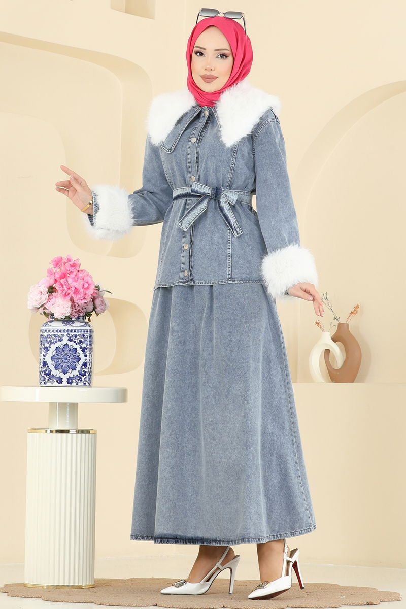 المنتج لديه ياقة الفراء. المنتج به أزرار من الأمام. غير مبطنة. يتم تضمين الفراء في المنتج، ولا يجوز استخدامه اختيارياً. الحزام متضمن، ،يمكن استخدامها حسب الرغبة .خصر التنورة مرن الاكمام مزينة بالفرو قد يكون هناك اختلاف في الدرجة اللونية في المنتج بسبب التقاط الصور الفوتوغرافية.