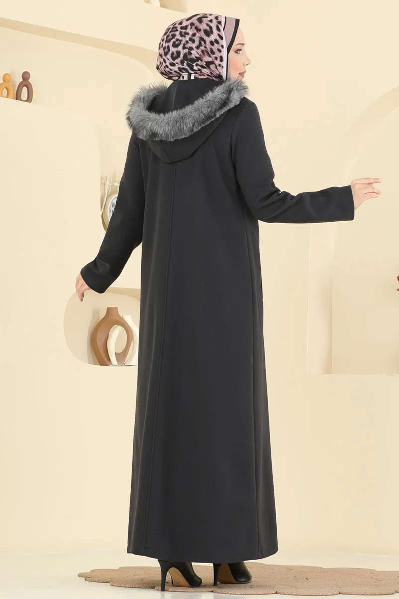 Kürk Detaylı Kaşe Kaban 6667YG95-MS Antrasit