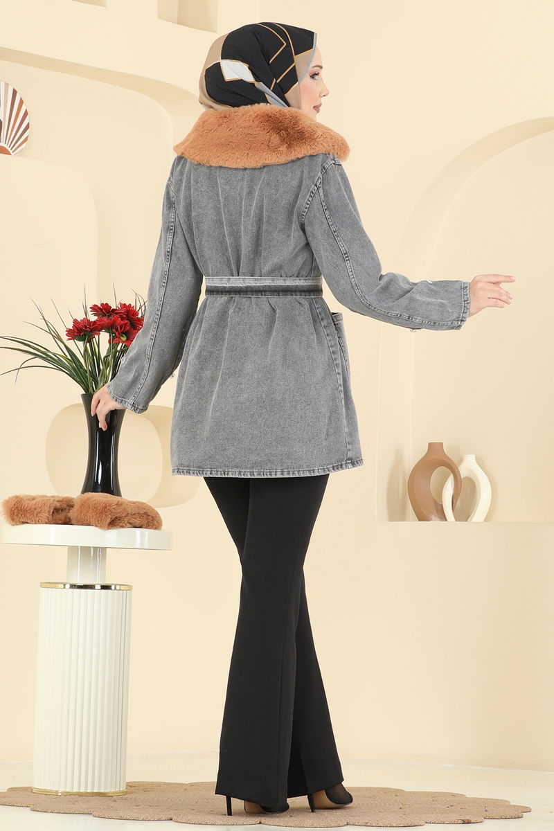 Kürk Detaylı Kot Kap 4086ORG1169-MS Gri Kot