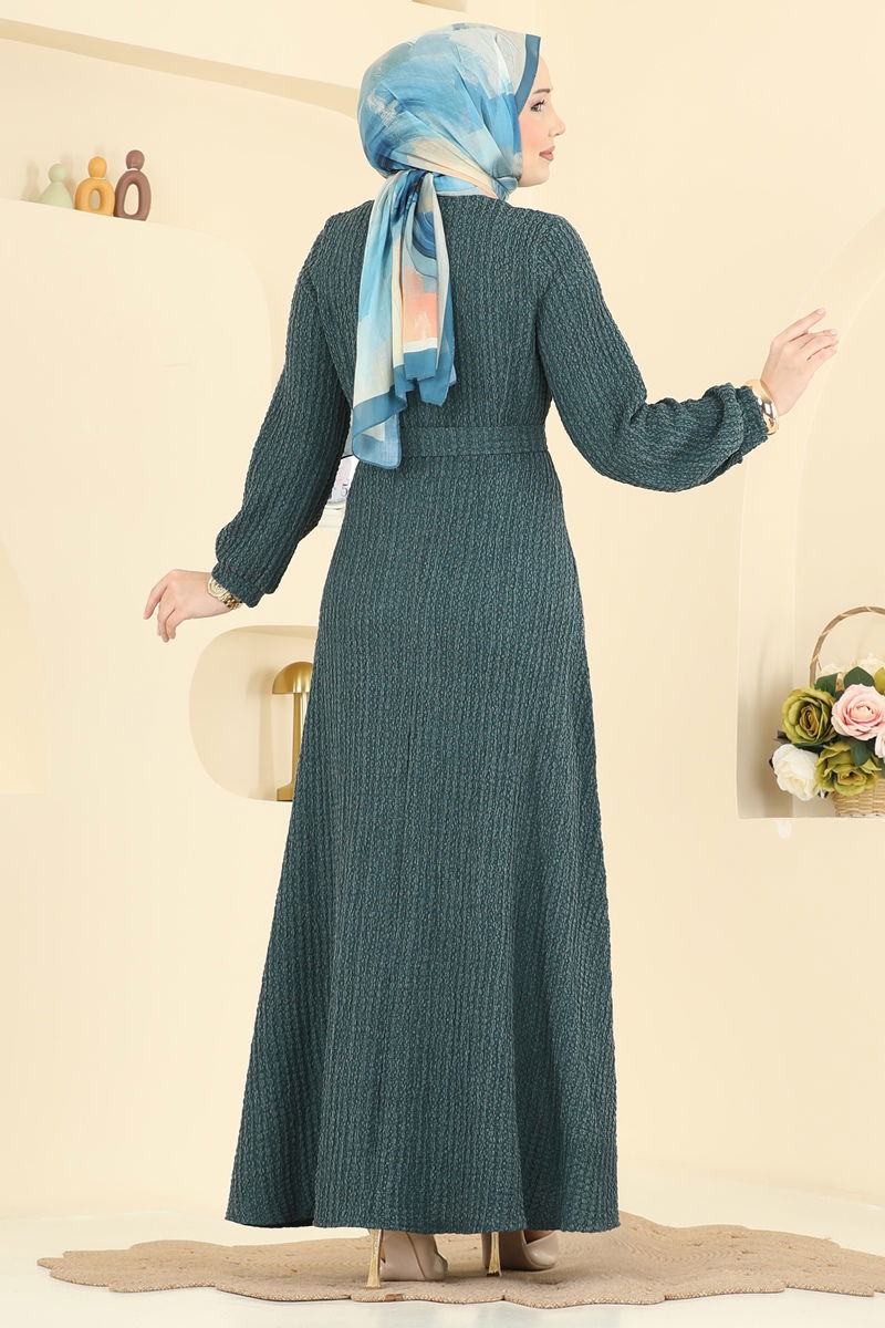 Zümrüt Yeşili Kuşaklı Bürümcük Elbise
