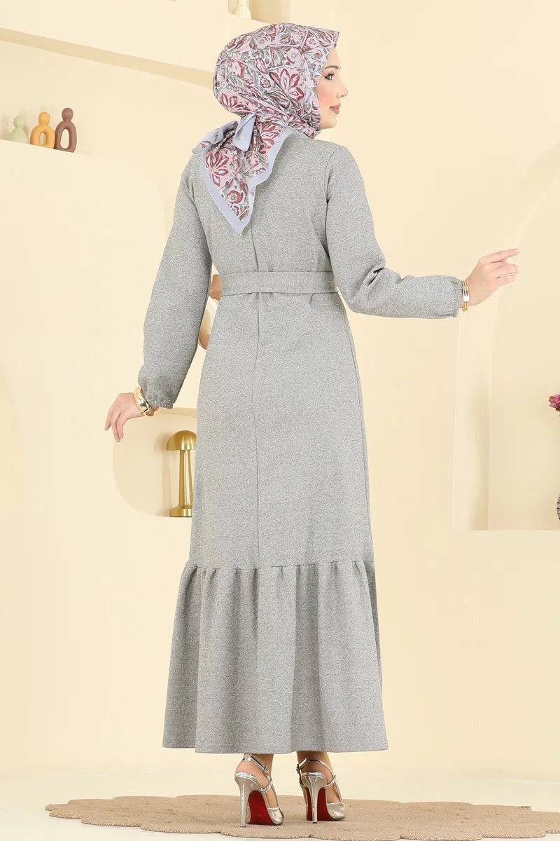 Kuşak Detaylı Tivit Elbise 702PM271-MS Gri