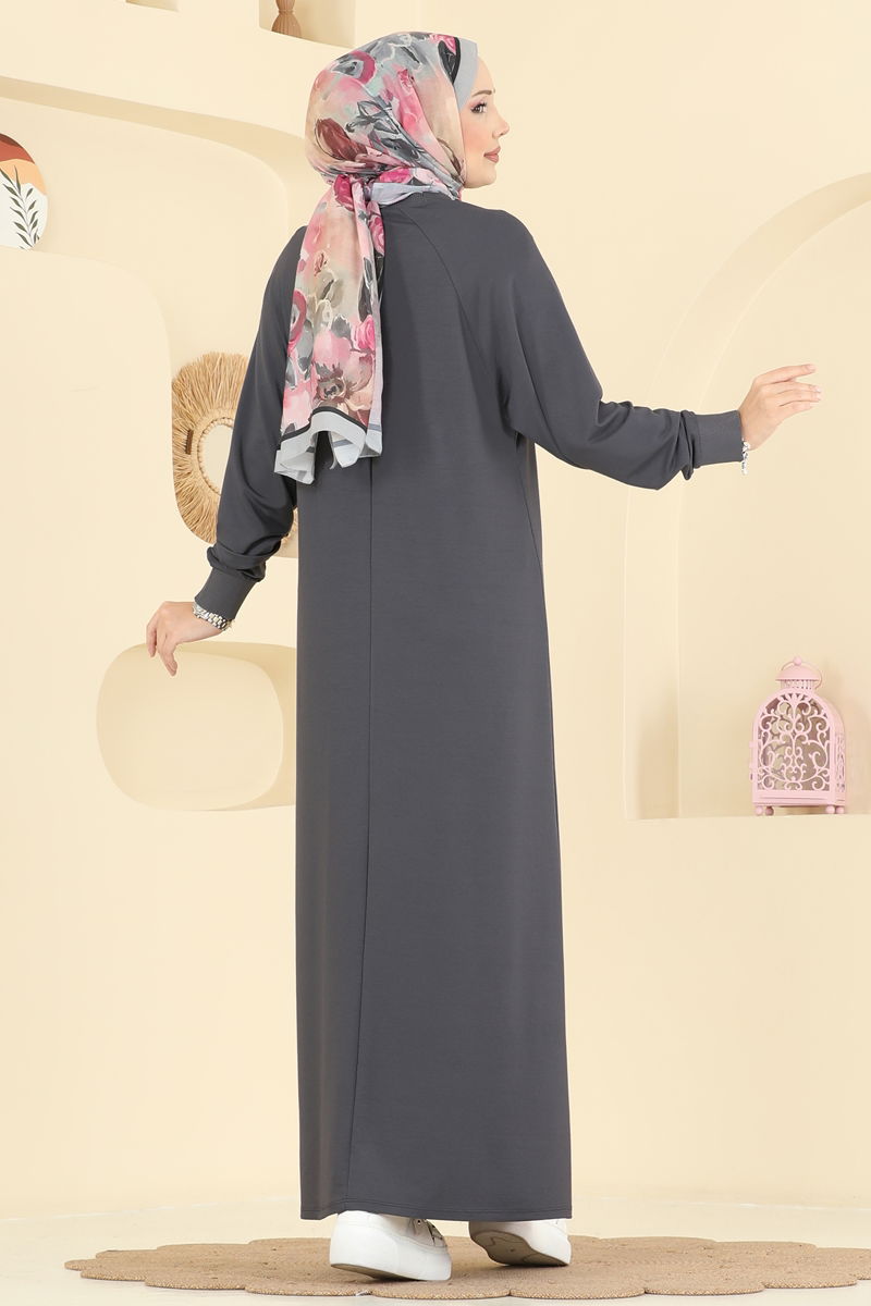 Kuşgözü Detaylı Kristal Elbise 3455UZ662-MS Gri