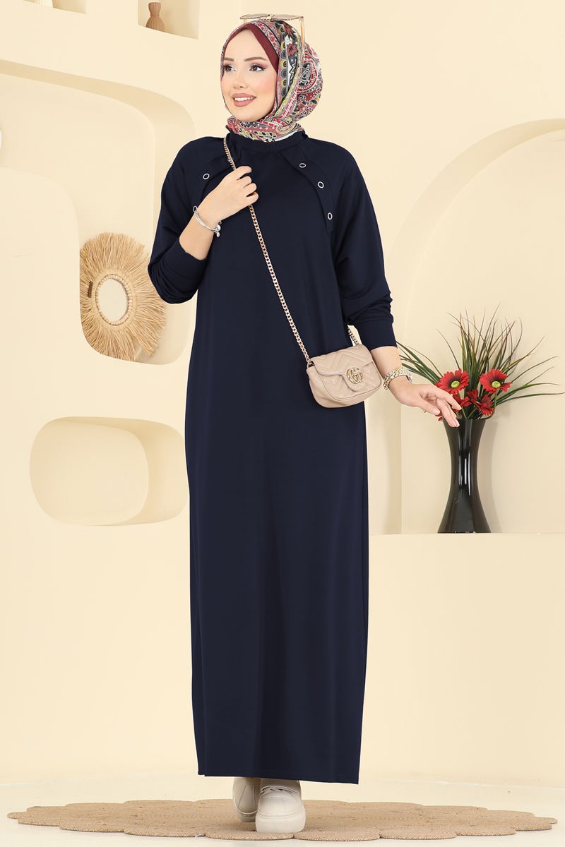 Detaylı Kristal Kuşgözü Elbise Lacivert