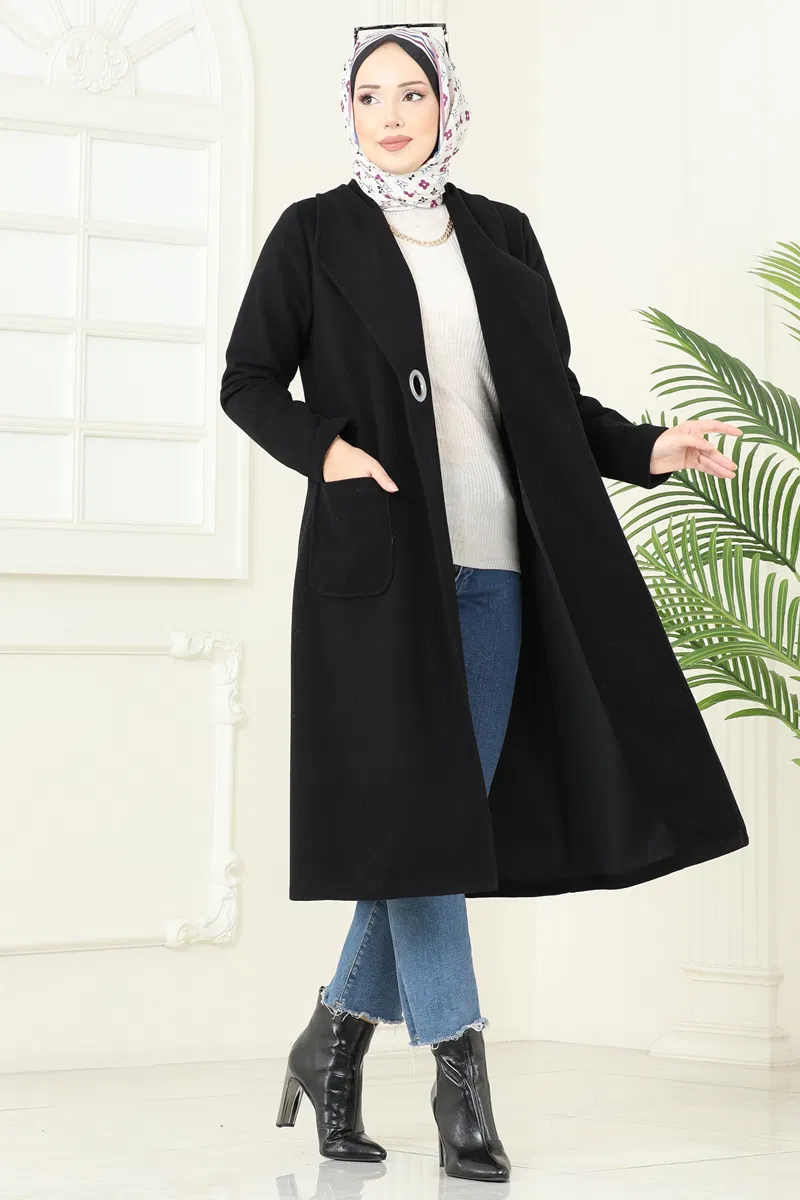 Bu siyah kap, zarif bir tasarıma sahip kuşgözü kemer detayıyla dikkat çekicidir. Kruvaze yaka ve astarsız tasarımıyla modern bir görünüm sunar; sabit kemer, belinizi güzel bir şekilde şekillendirir. Sonbahar ve kış mevsimlerinde ideal bir seçim olan bu kap, 30 derecede hassas yıkama imkanı ile bakımı kolaydır ve cepli yapısı sayesinde pratik bir kullanım sunar.