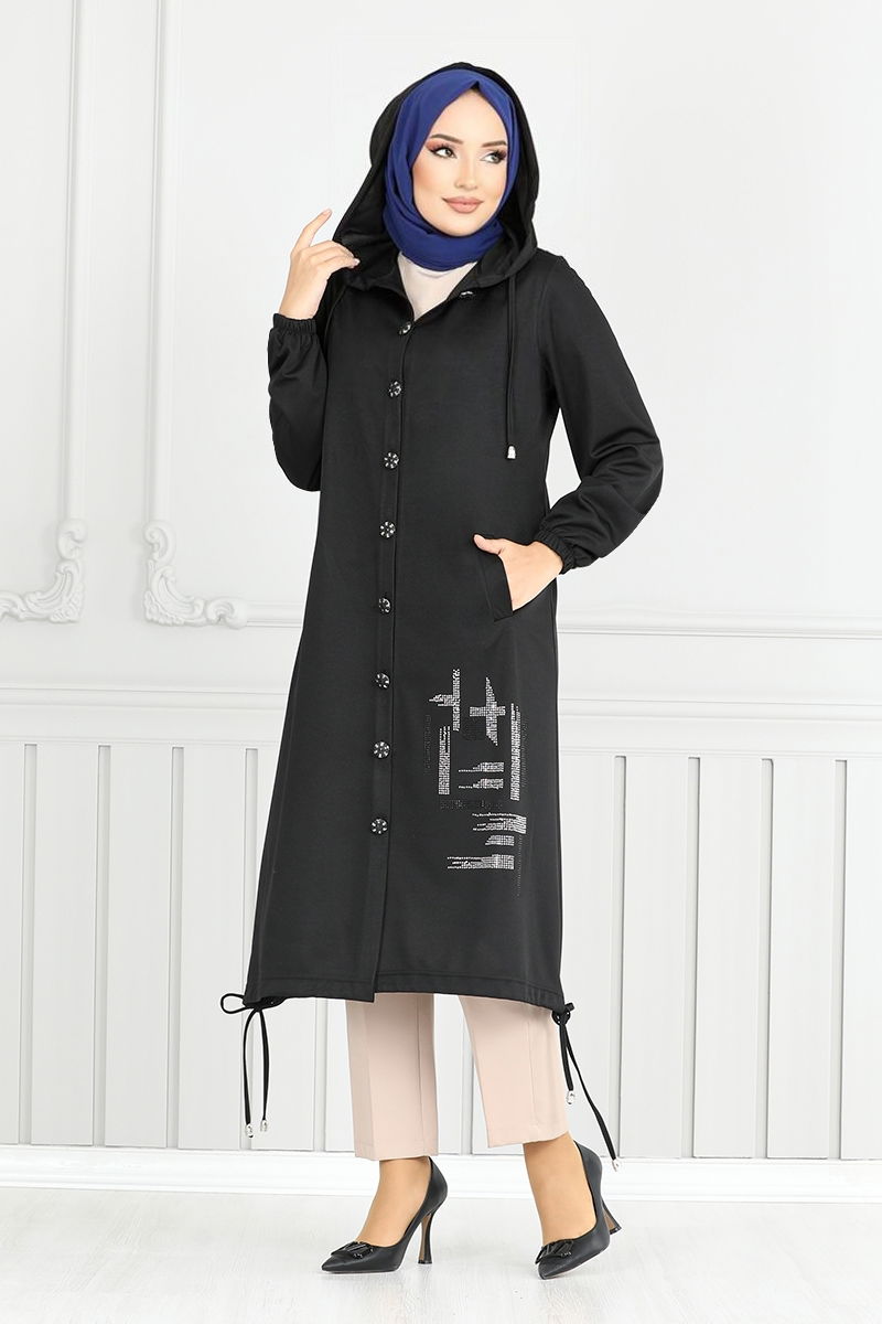 Casquette saisonnière avec détail en pierre SiyahKumas Caractéristique: Il est fait de tissu tamponné. Il peut être utilisé en quatre saisons saisonnières. Caractéristique du produit: Le hijab de la nouvelle saison est un produit de mode. Le produit est un col à capuche. Le produit est boutonné par l'avant. Il n'est pas doublé. Les détails en dentelle sont des accessoires. La capuche est cousue au produit. Les pierres sont de la colle. Poche est disponible.Il peut y avoir une différence de tonalité dans le produit en raison de séances photo conceptuelles. Lavage: Dans les produits imprimés, le produit doit être retourné et lavé et repassé à l'envers. (L'article sur le modèle est de taille 38.) C'est un produit hijab modèle de casquette saisonnière avec des détails en pierre. Il peut être utilisé en quatre saisons saisonnières. Dans les produits imprimés, le produit doit être retourné, lavé et repassé à l'envers. Il est fait de tissu dabil. Le produit est un col à capuche. Le produit est boutonné par l'avant. Il n'est pas doublé. (L'article sur le modèle est de taille 38.) La capuche est cousue au produit. Les pierres sont de la colle. Poche est disponible.Poids(Kg):0.32