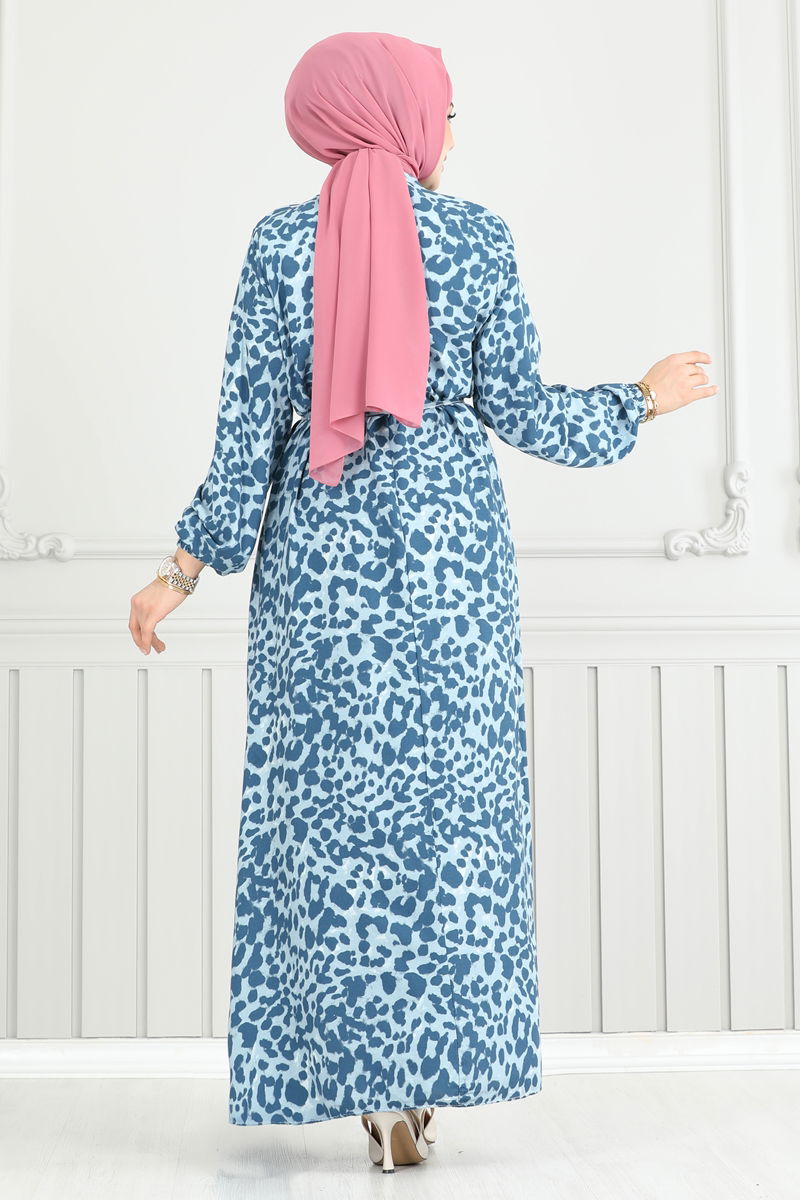 Reflect your modern and elegant choices with our Leopard Pattern Viscose Dress, suitable for all seasons. This hijab-style dress offers the comfort and soft touch of viscose fabric and should be hand washed. It features a semi-mandarin collar creating an elegant look, and a back zipper for easy wear. Its unlined structure and elastic cuffs allow for comfortable movement. The belt, with ends stitched together for a clean look, can be optionally used, providing a unique style flexibility.