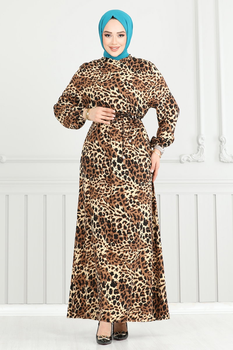 Leopar Desen Viskon Elbise 803OZN1046-MS Leopar