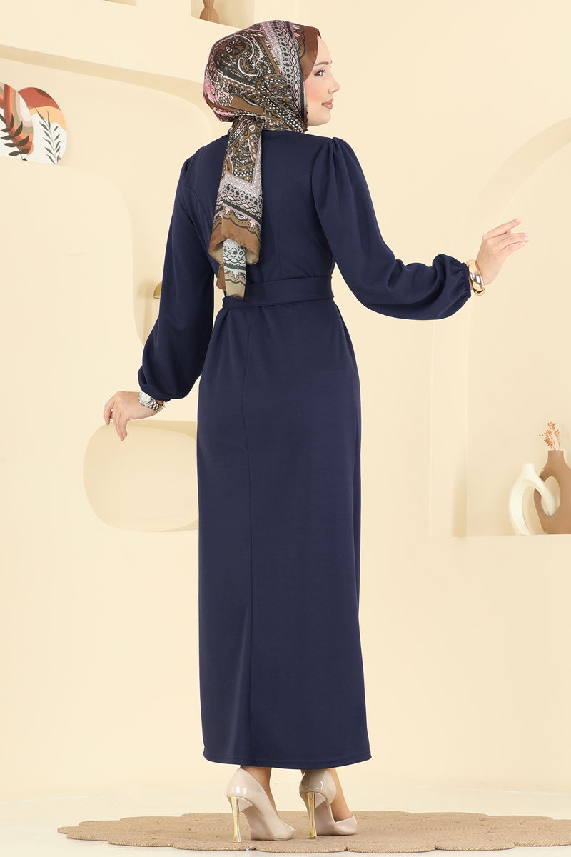 Manşet Lastikli Kuşaklı Elbise 25008UKB139-MS Laci
