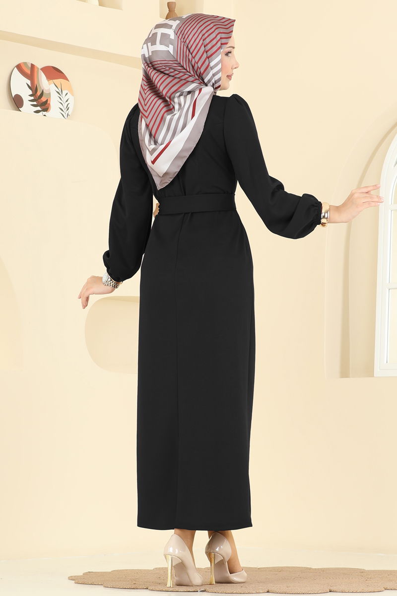 Manşet Lastikli Kuşaklı Elbise 25008UKB139-MS Siyah