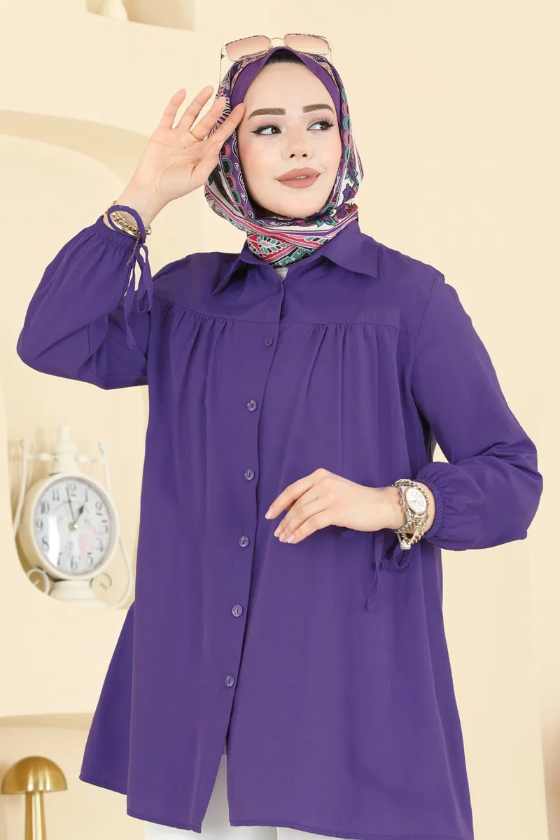 Manşeti Bağcıklı Terikoton Gömlek 337ASN888-MS Mor