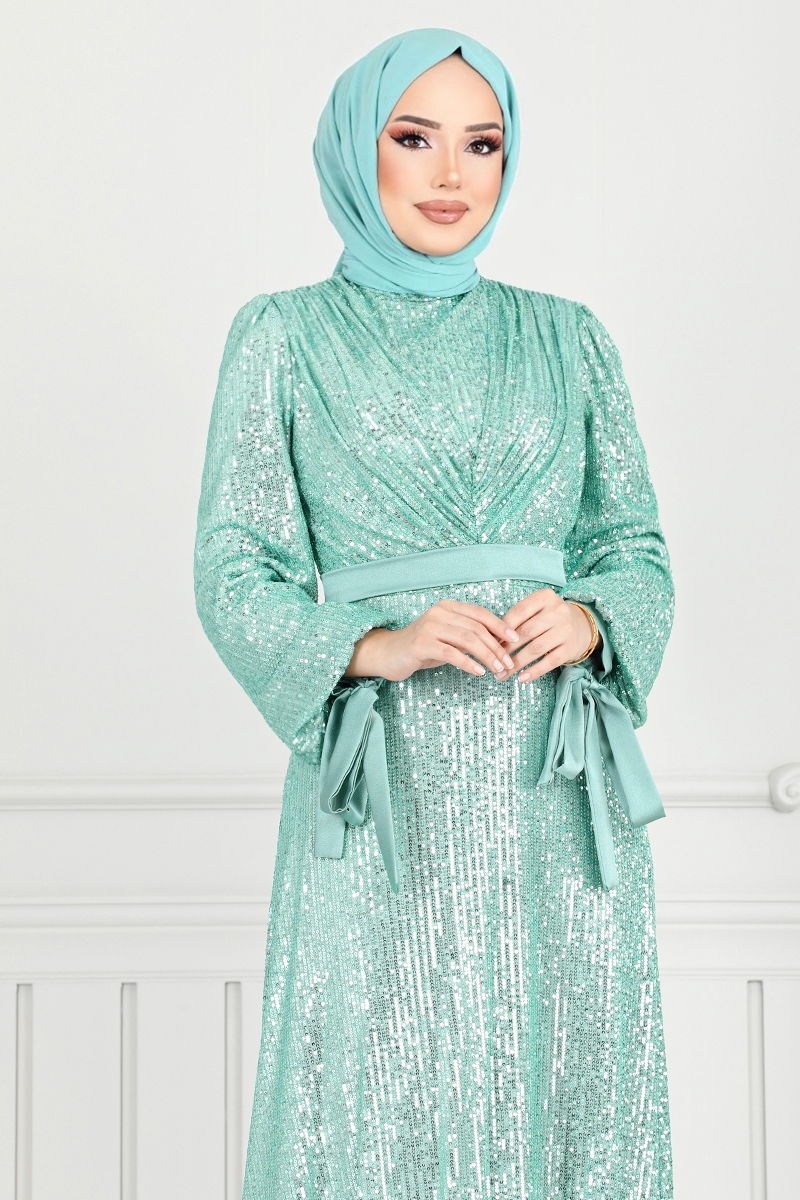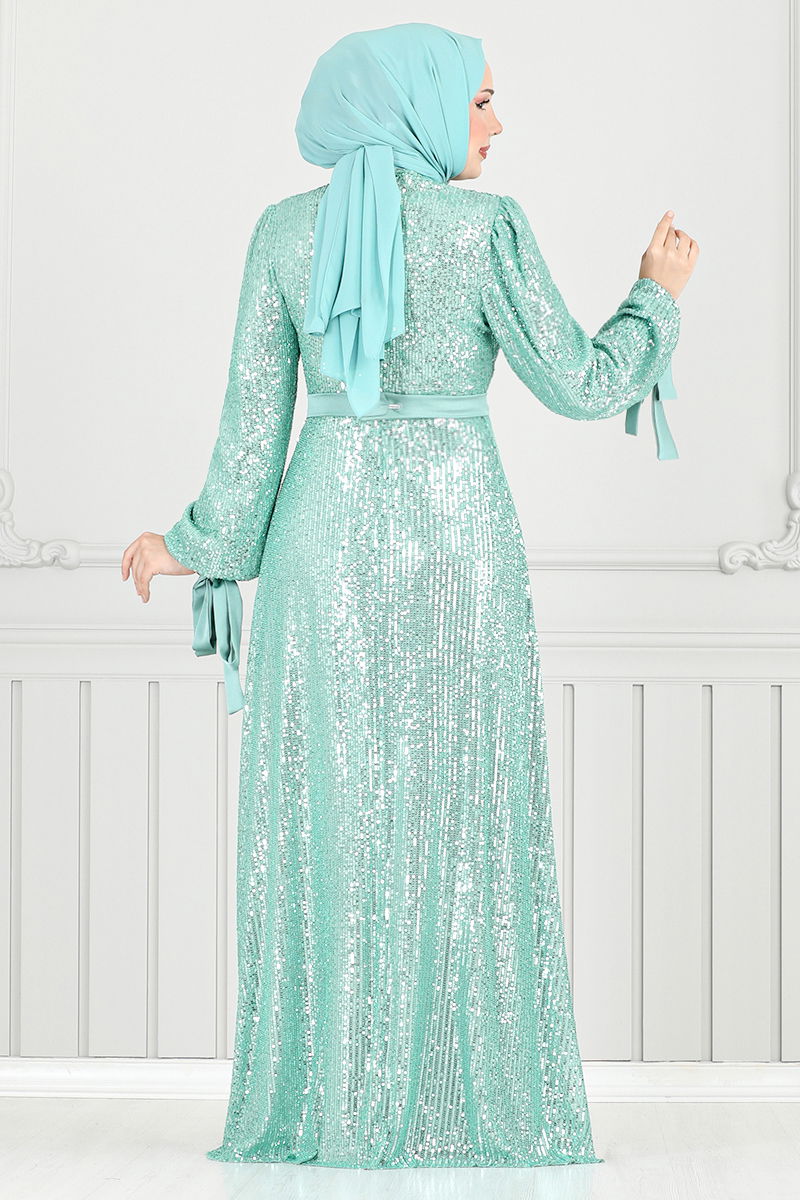 يوجد زر يمكن استخدامه من الخلف. المنتج لديه ياقة بيضوية. مبطنة. المنتج به سحاب في جزء من الخلف. المنتج يحتوي على حزام خصر مُخاط. تفاصيل الترتر اللامع تم خياطته الحزام متضمن، ،يمكن استخدامها حسب الرغبة مع حزام بأربطة. قد يكون هناك اختلاف في الدرجة اللونية في المنتج بسبب التقاط الصور الفوتوغرافية.