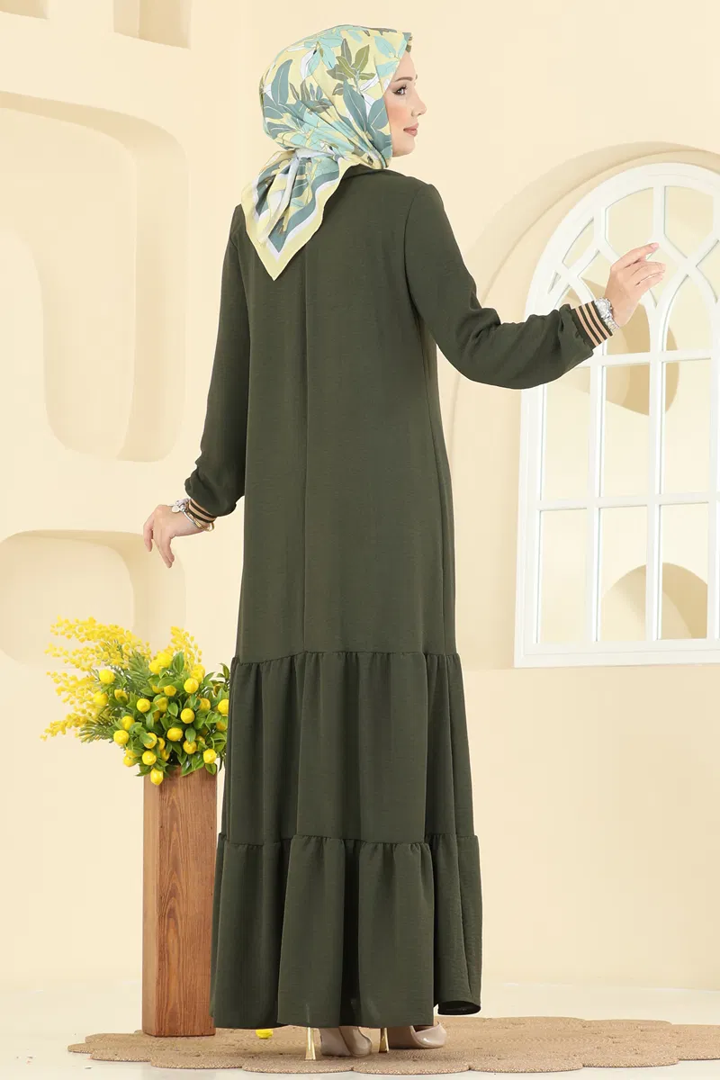 Manşeti Garni Detaylı Aerobin Elbise 5006MDA386-MS Haki