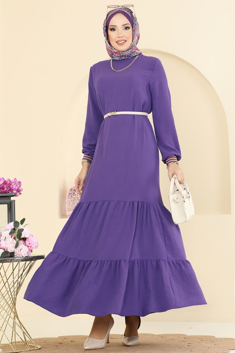 Manşeti Garni Detaylı Aerobin Elbise 5006MDA386-MS Lila