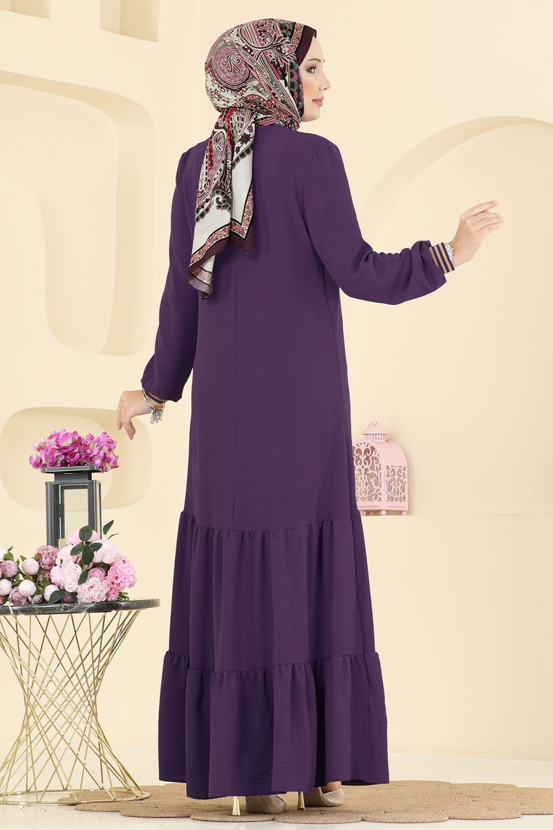 Manşeti Garni Detaylı Aerobin Elbise 5006MDA386-MS Mürdüm