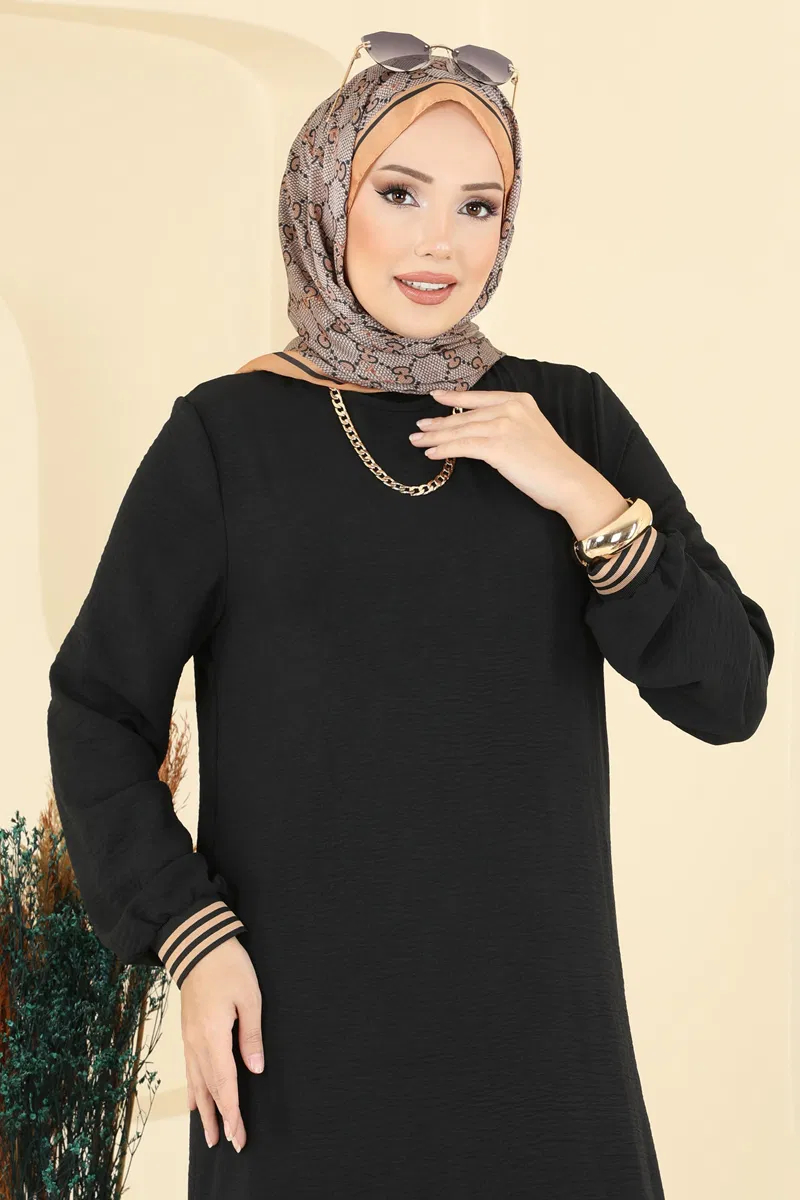 Moda dünyasında öne çıkan Aerobin Kumaşlı Lastik Manşetli Elbise, her mevsim keyifle kullanabileceğiniz bir tasarımdır. Hafif ve hava geçirgen aerobin kumaşı sayesinde gün boyu konfor sağlar. Bisiklet yakası modern bir stil sunarken, manşetlerdeki lastik sayesinde rahat bir oturma sunar. Ayrıca sırt kısmındaki düğme ile elbiseyi rahatça giyip çıkarabilirsiniz. Tesettür giyime şık bir dokunuş katmak isteyenler için ideal bir seçenektir.