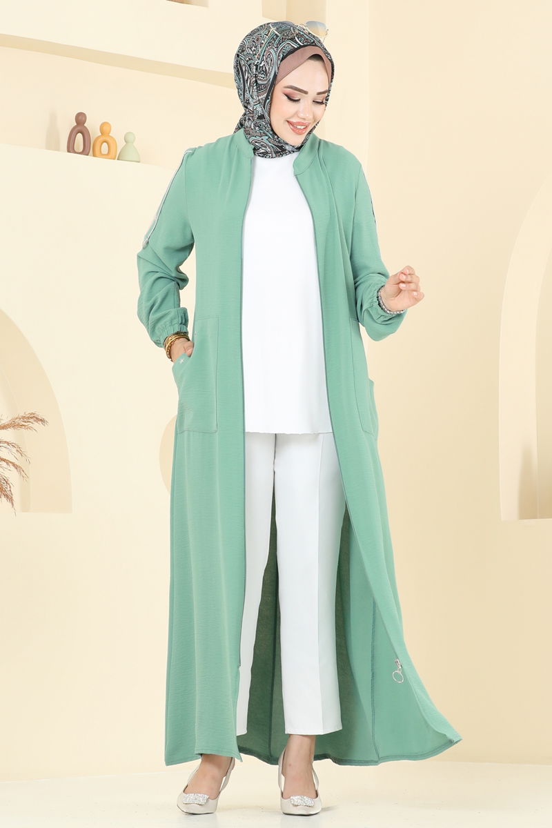 Baharlık ve kışlık kullanıma uygun olan Mint Renkli Elastik Manşetli Aerobin Ferace, Aerobin kumaşın hava geçirgenliği sayesinde her mevsim konfor sağlar. Yarım hakim yaka ve ön fermuar gibi şık detaylara sahiptir. Yan cepleri sayesinde praktik bir kullanım sunar ve lastikli manşetler kolaylık sağlar. 30°C hassas yıkama ile temizleyebilirsiniz.