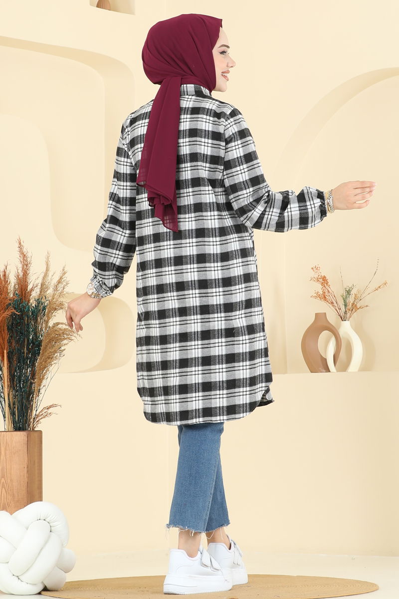 Manşeti Lastikli Ekose Tunik 4123PM271-MS Siyah
