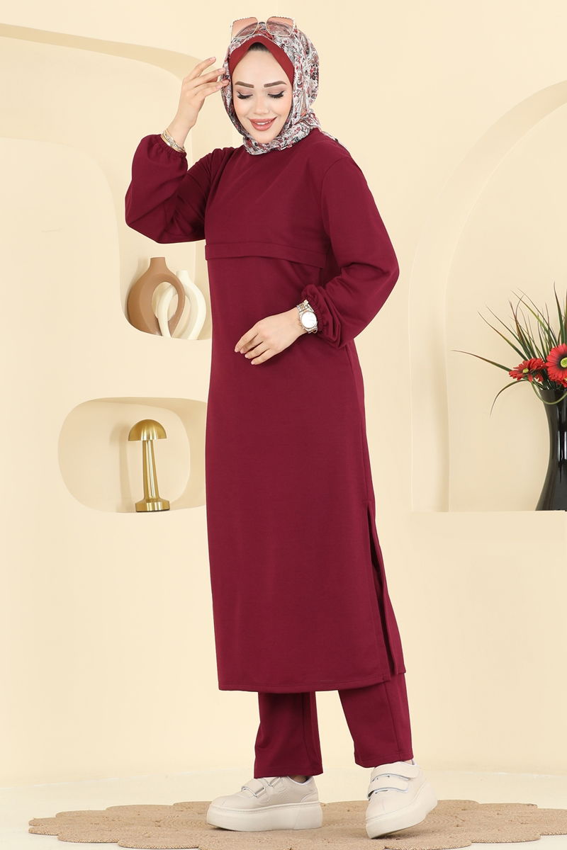 Manşeti Lastikli İki İplik Takım 1914SBL832-MS Bordo