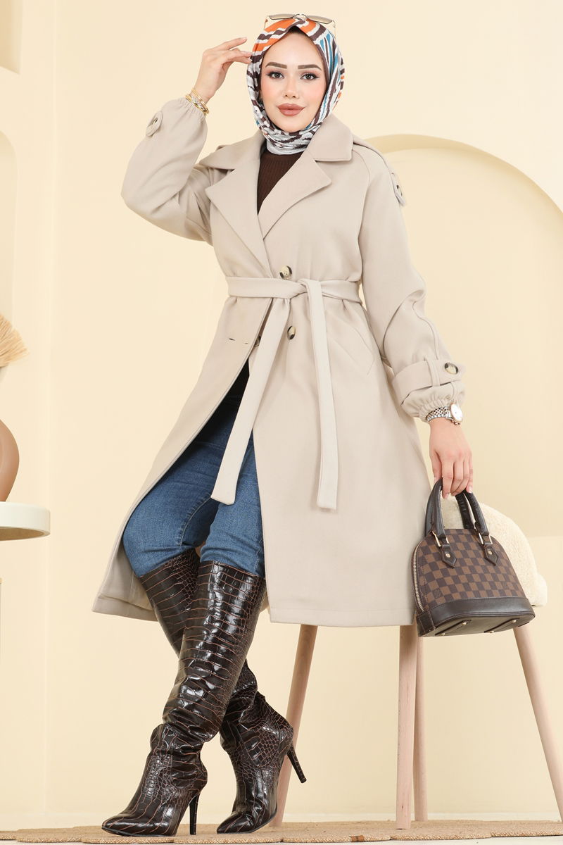 Product Feature : It is a new season hijab fashion product. There are buttons available from the front. The product has a Double-breasted collar. It is lined. Belt included, optional not available. The product has a pocket. The cuff is rubberized. There may be a tonal difference in the product due to concept photo shoots.