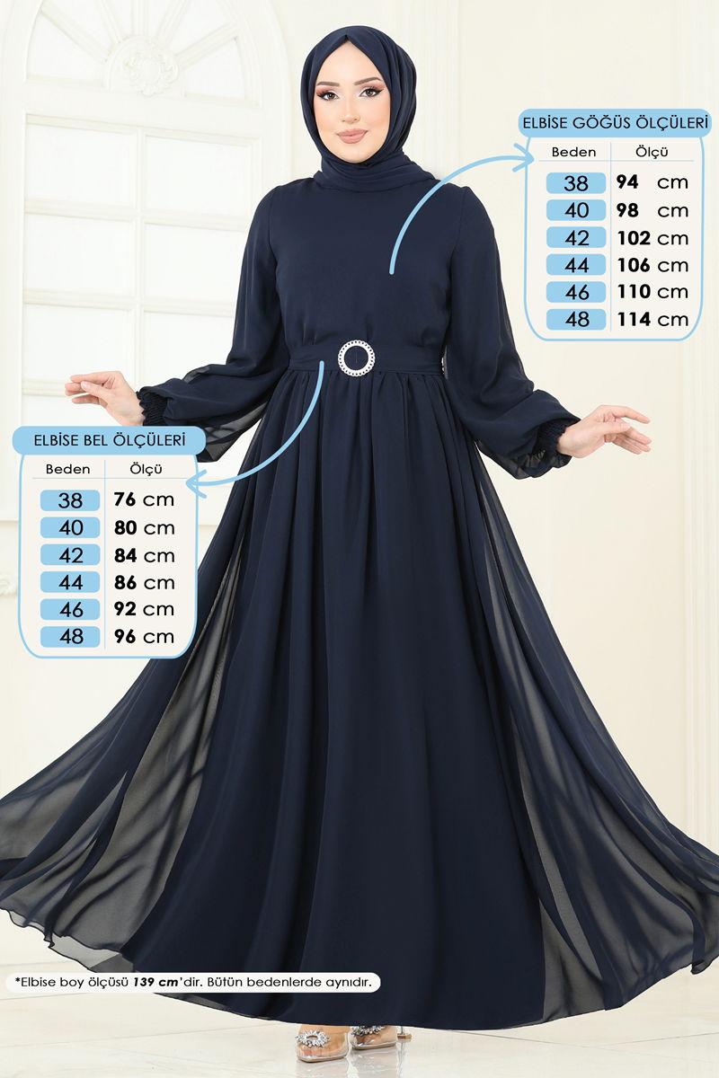 Kumaş Bilgisi: Elbise şifon malzemeden üretildi. Dört mevsim giyilebilir niteliktedir.