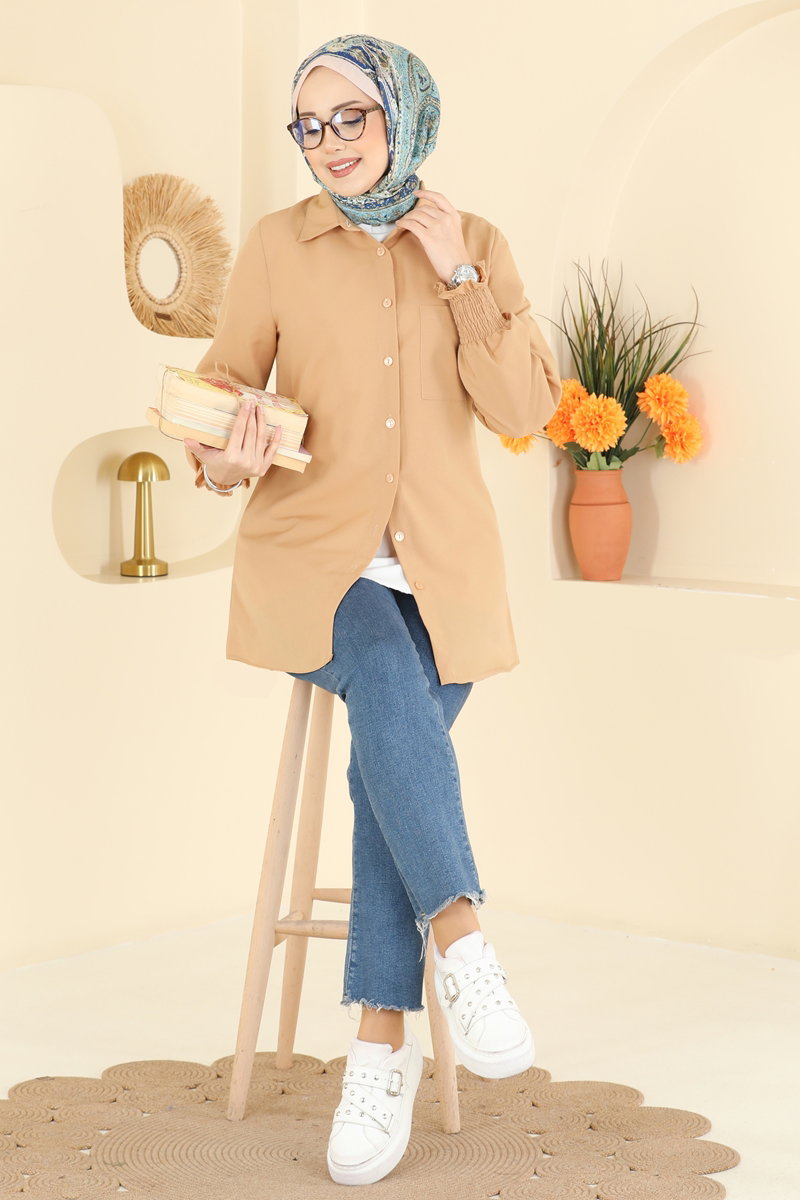 Product Feature : It is a new season hijab fashion product. The product has a Shirt collar. The product has From the front buttons. Unlined. The chest pocket is active. The cuff is rubberized. There may be a tonal difference in the product due to concept photo shoots.
