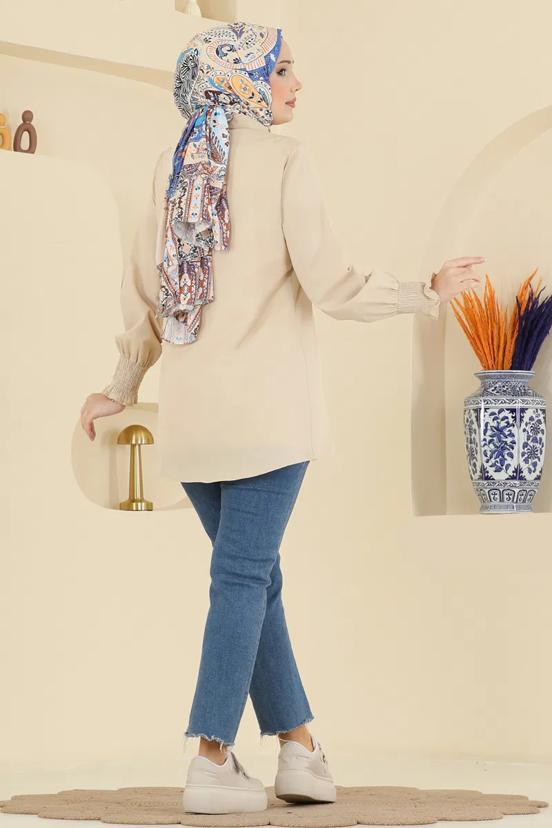 Manşeti Lastikli Terikoton Gömlek 338ASN888-MS Vizyon