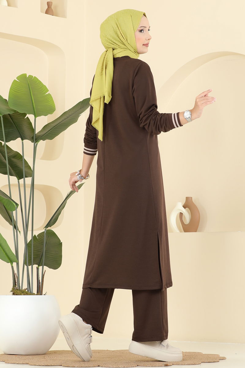 • Ribana Detaylı Tunik Pantolon Takımı - Kahve Rengi