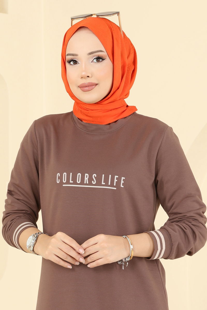 Ribana Manşet Detaylı Takım, dört mevsim tercih edilebilir bir tesettür modasıdır. Çift iplik kumaştan imal edilmiş olan bu kombin, 30 derece hassas yıkama ile temizlenebilir. Tunik yan yırtmaçlara ve astarsız bir yapıya sahiptir; yazılar baskı tekniği ile uygulanmıştır ve pantolon lastikli bel tasarımıyla konfor sunar. Şıklık ve rahatlık arayanlar için mükemmel bir seçenektir.