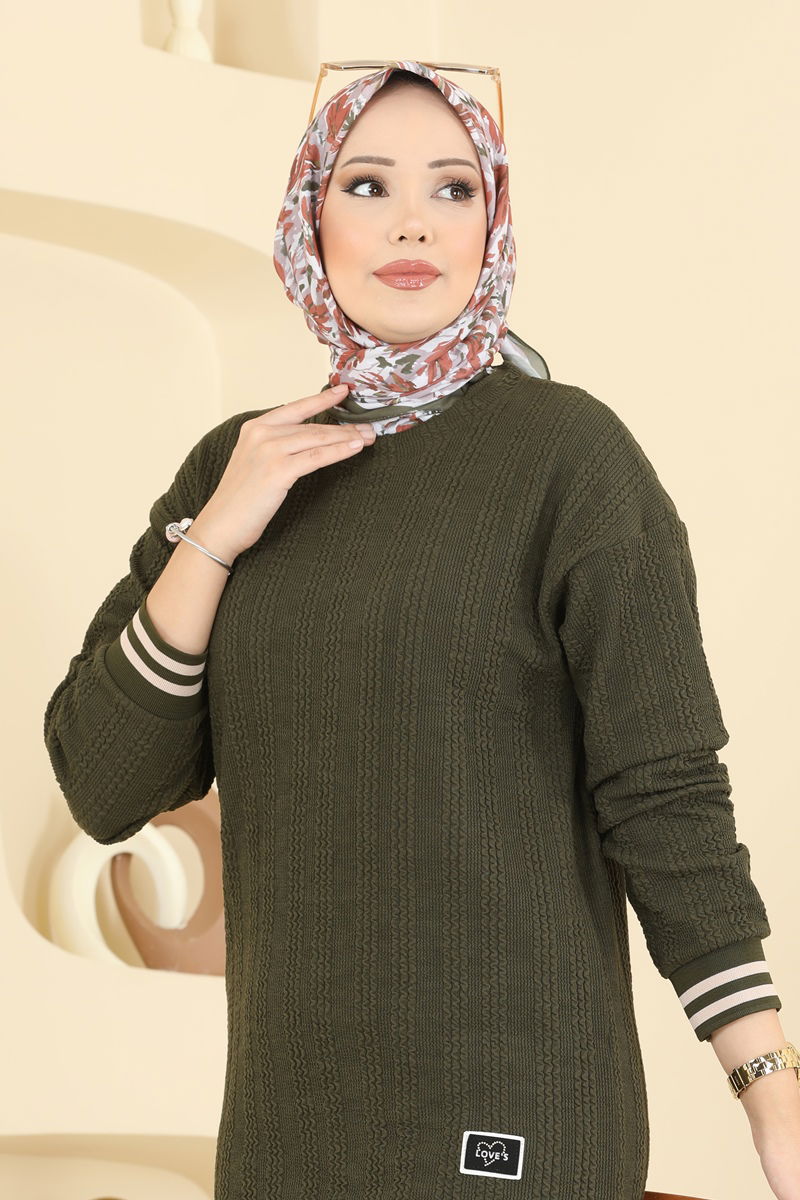 Manşeti Ribana Detaylı Tunik 709PM271-MS Haki