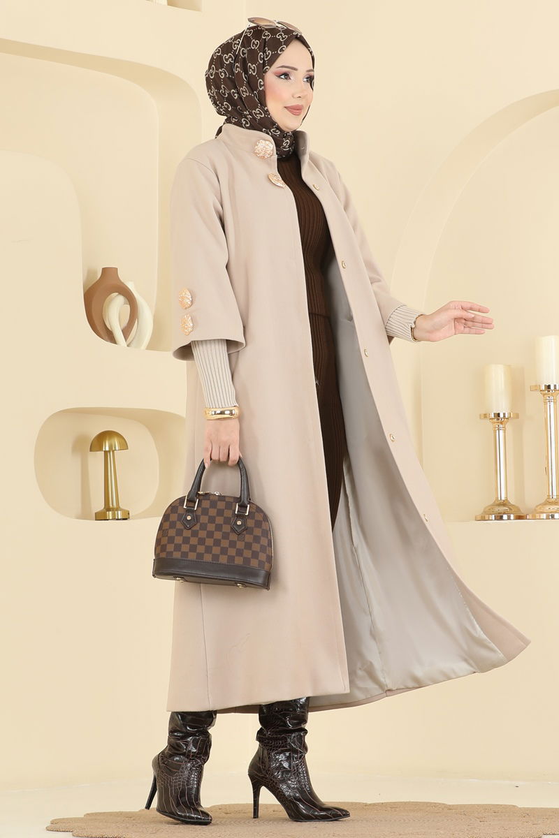 Yeni Sezon Triko Manşetli Kaşe Kaban