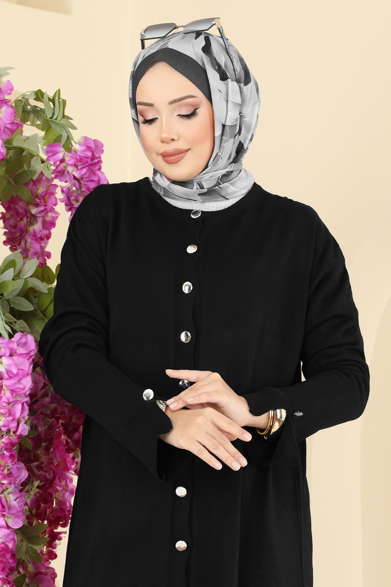 Manşeti Yırtmaçlı Triko Hırka 2437UZ662-MS Siyah