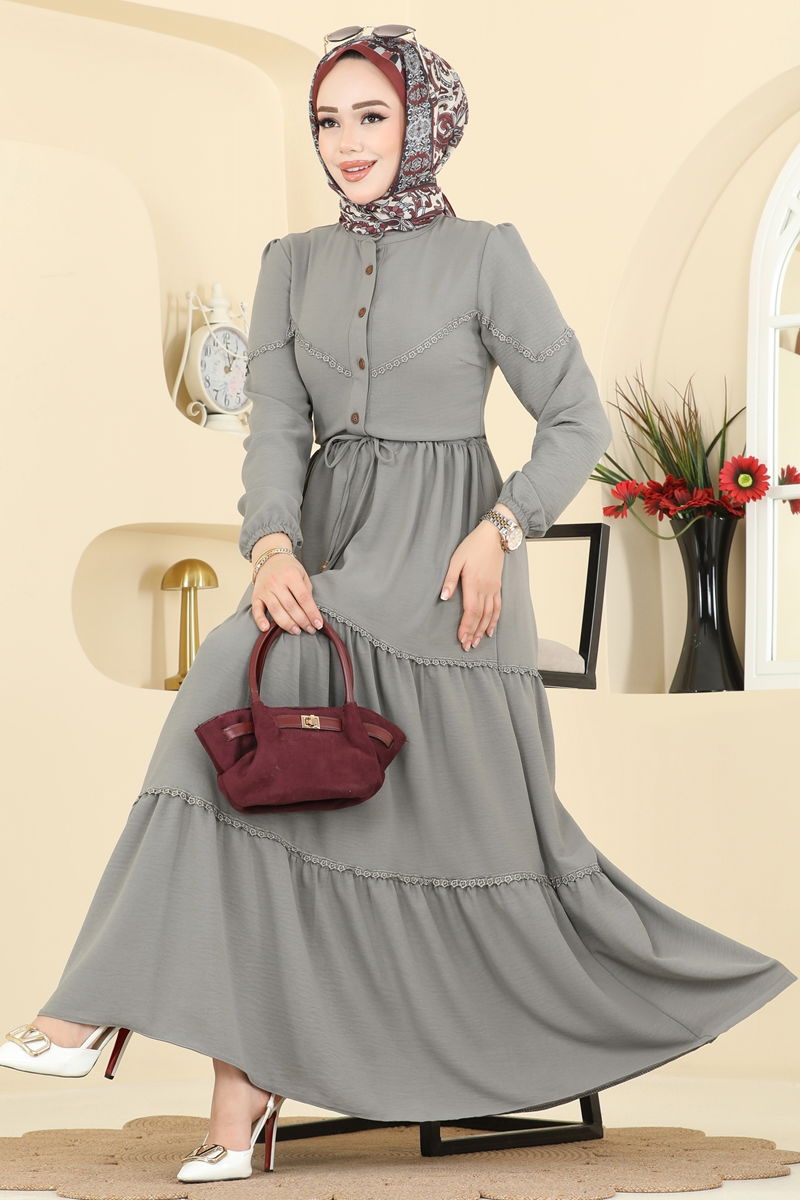 Motif Detaylı Aerobin Elbise 6601ORG1169-MS Gri