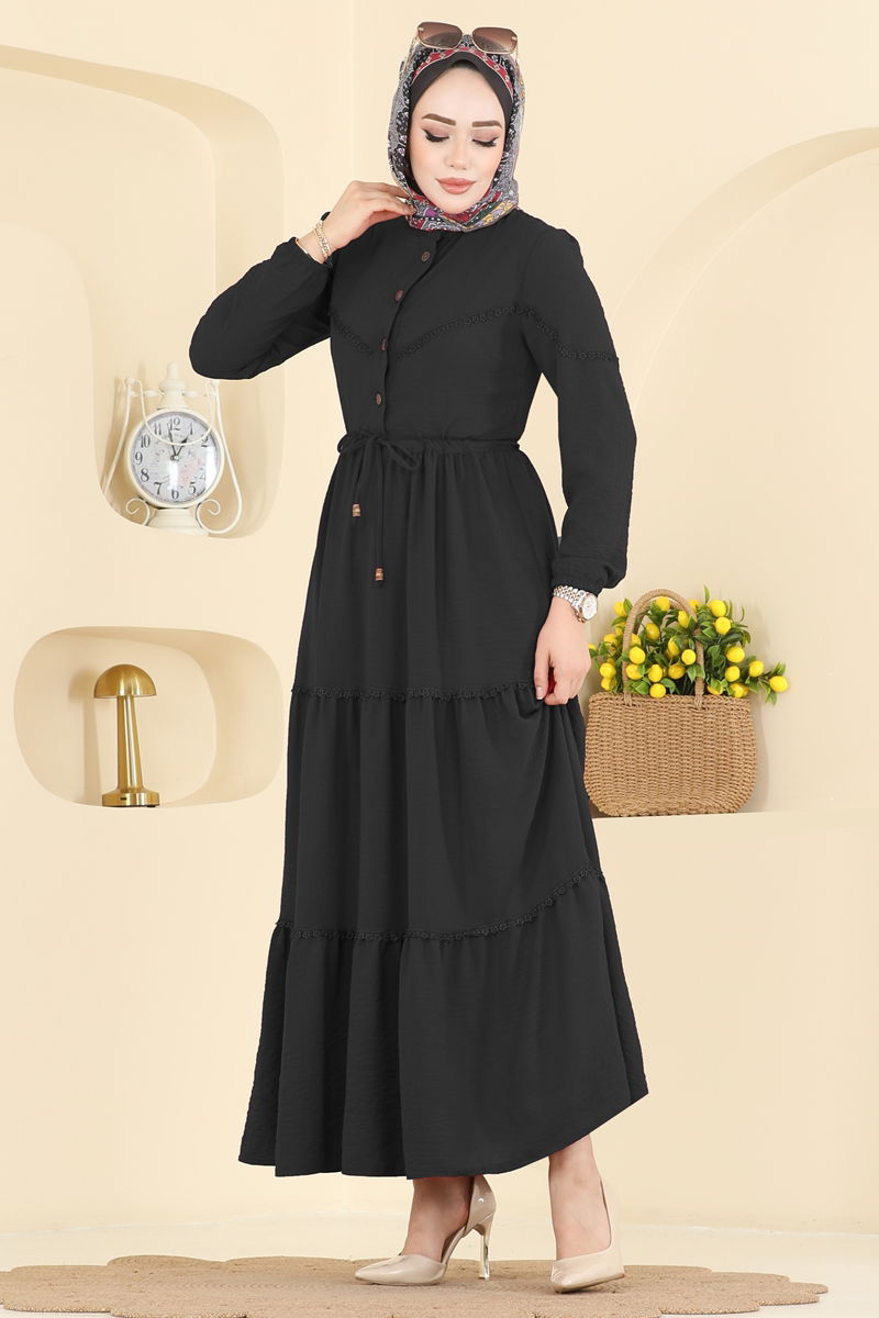 Motif Detaylı Aerobin Elbise 6601ORG1169-MS Siyah