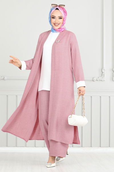 Kapitone Detaylı Üçlü Takım 1814LNA1042-M Gül Kurusu