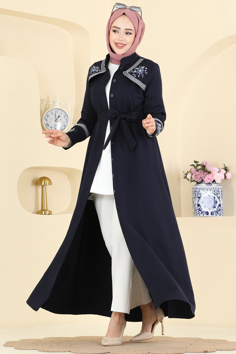 Bu zarif Lacivert Nakış İşlemeli Ferace, yılın her mevsimi konforlu bir şekilde giyebilirsiniz. Hassas ve kaliteli dabıl kumaştan üretilmiştir. 30 derecede yıkama yapabilirsiniz, bu sayede kullanımı oldukça pratiktir. Zarif Yarım Hakim yakası ve düğmeli ön tasarımıyla şıklığı yakalayabilirsiniz. Farklı ve elegant nakış işlemeleri bulunan elbise, iki ucu sabitlenmiş kemer detayı ile geliyor. Kemer, ihtiyaca göre çıkarılabilir, böylece çeşitli giyim tarzlarına uyum sağlar.